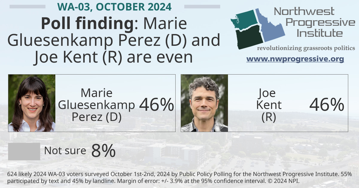 WA-03 remains a tie, with Gluesenkamp Perez and Kent even, NPI poll finds